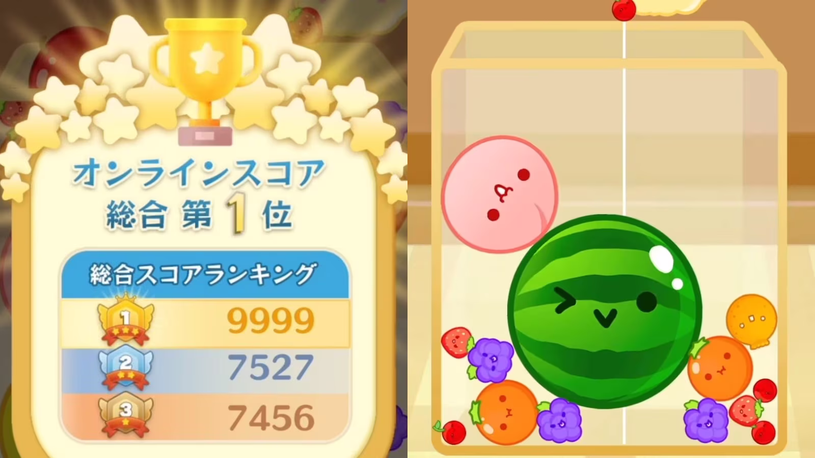 從日本紅到全球的 Switch 益智解謎《西瓜遊戲》(スイカゲーム)持續發燒中,一名日本玩家單場合出 5 顆西瓜,以 9,999 分的成績站上世界第一,並達到系統得分天花板,美國五百萬訂閱實況主 Ludwig 也前來祝賀。