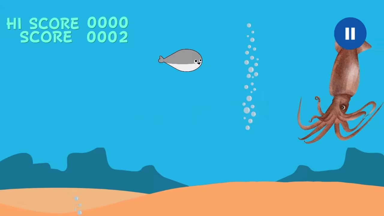 隨著魚魚游得越遠,包括章魚、魚龍、鯨魚等阻礙越趨密集,撞到它們(除了海草)就會結束遊戲,游太高浮出水面、潛太低吃沙也會 GG。