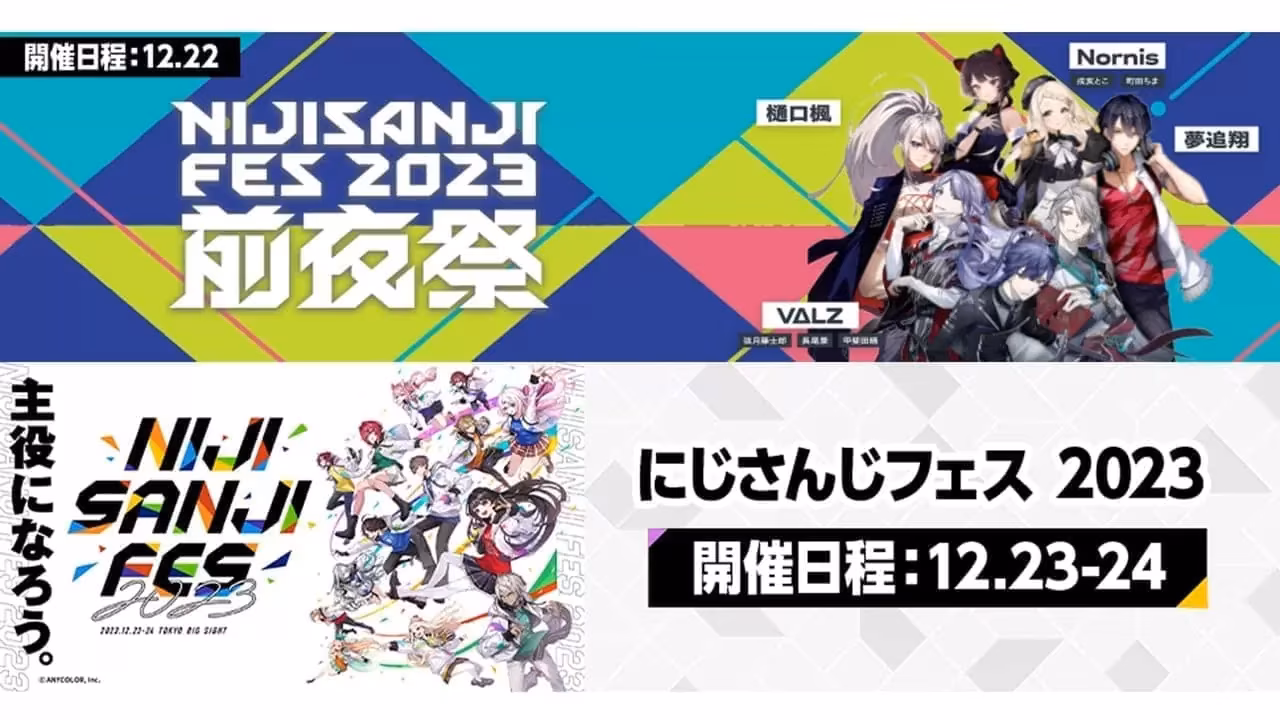 ANYCOLOR 旗下 VTuber 事務所彩虹社(にじさんじ)盛會「にじさんじフェス2023」(Nijisanji Fes 2023)年初確定 12 月 23、24 日在東京國際展覽館舉辦,稍早執行委員會宣布活動六大節目,預計 22 日舉辦前夜祭,粉絲須註冊多玩國 niconico 收看本次活動的直播。