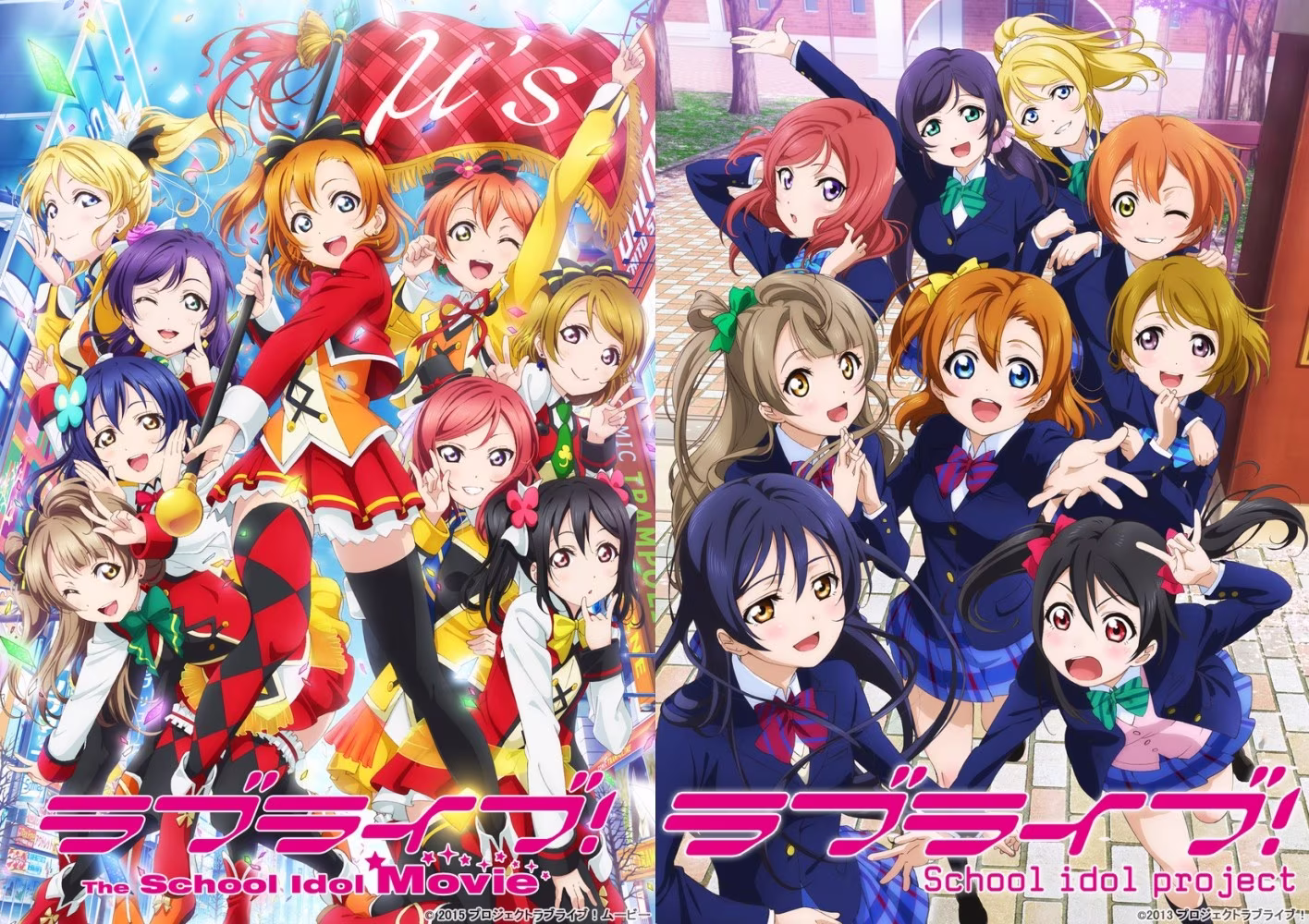 《Love Live!》無印版企劃始於 2010 年初《電擊 G's magazine》,公布學園偶像「μ's」的角色形象,並發行首張單曲;2012 年開始推出漫畫系列;2013 年出版輕小說;2013 年播映改編電視動畫,同年 4 月起手機遊戲《Love Live! 學園偶像祭》正式營運;2015 年登上第 66 回 NHK 紅白歌合戰。