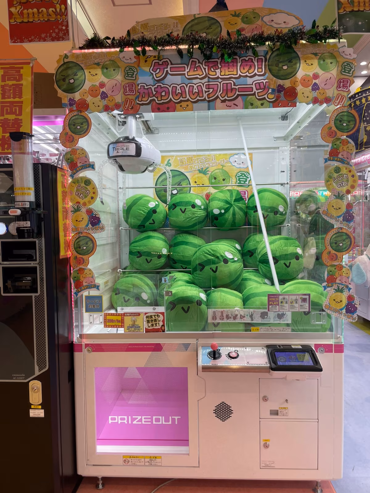 官方 X(舊稱推特)近日貼出了一張在日本的夾娃娃機照片,內部的娃娃是方形的西瓜抱枕,官方表示收到了玩家詢問,但必須鄭重的說這並不是官方商品。