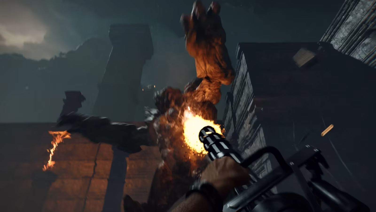 雖然官方並未透露更多玩法細節,但 PV 透露戰鬥血腥又暴力,警長用格林機槍、榴彈砲、左輪等形形色色槍枝摧毀叢林與荒野襲來的爬蟲類,甚至發揮神力徒手抵抗龍顎、撕下三角龍的角然後把它倒塞回去。