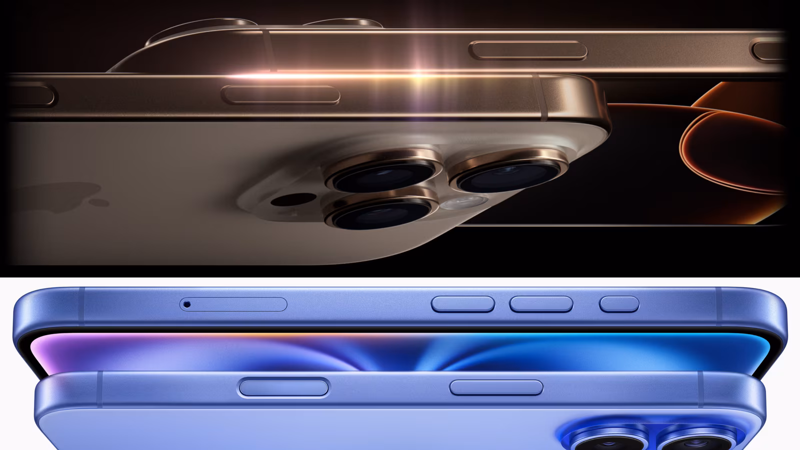 iPhone 16 Pro / iPhone 16 Pro Max 容量配置和售價與前代相同,新色為沙漠色鈦金屬,5 倍鏡下放至機身較小的的 iPhone 16 Pro。兩者螢幕都增大,iPhone 16 Pro 拓展至 6.3 吋,iPhone 16 Pro Max 拓展至 6.9 吋,且邊框縮得更窄。