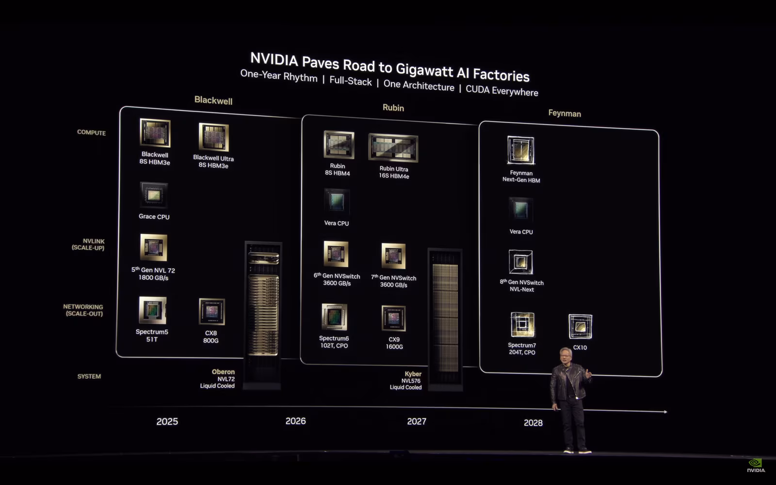 NVIDIA 於 GTC 2025 公開全新的資料中心 GPU 發展藍圖,除了曾在去年 COMPUTEX 2024 公開的 Rubin 架構,更預計於 2028 年推出 Feynman 架構。
