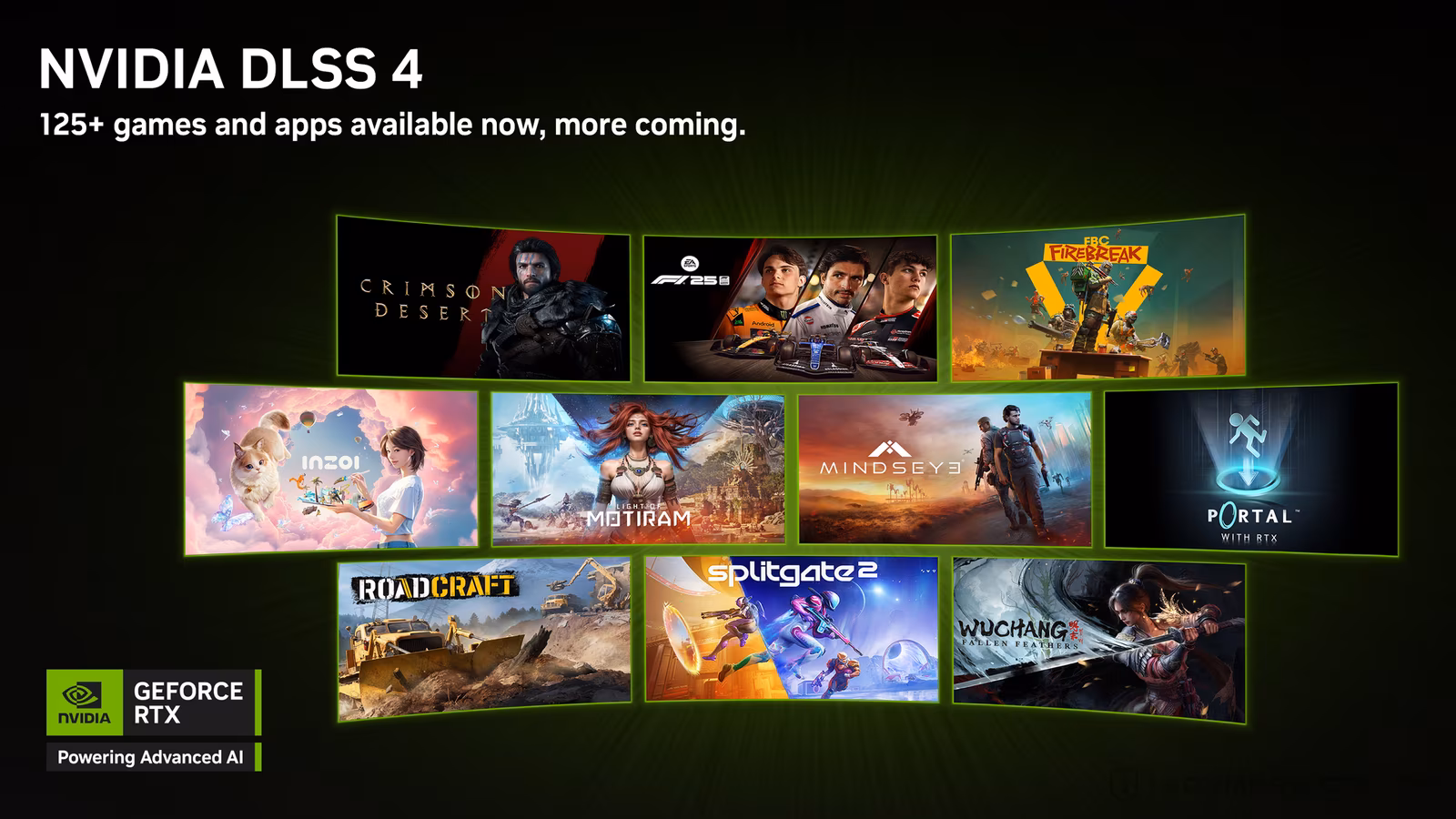 NVIDIA 表示,自 2025 年 1 月底 GeForce RTX 50 系列顯卡上市至今約 4 個月,已有超過 125 款遊戲與應用支援多畫格生成的 DLSS 4 技術。相較於 DLSS 3 達成此支援度要花費近 2 年時間,DLSS 4 已成為 NVIDIA 史上採用速度最快的遊戲技術。