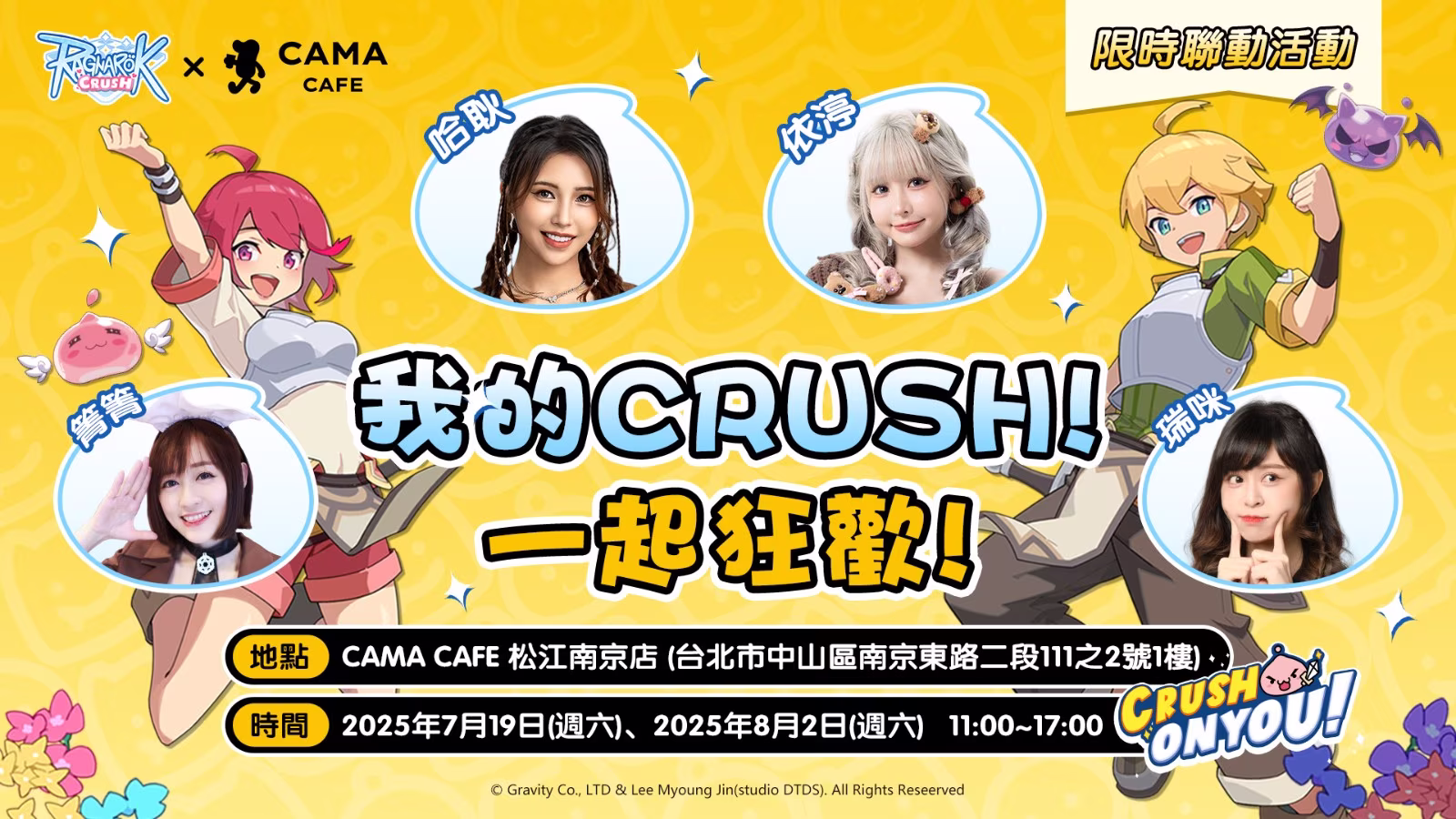 《Ragnarok Crush x Dal.komm》在韓國進行7月限時聯動活動,在 60 家指定合作店面購買 Crush 聯動套餐,可獲得遊戲兌換碼卡片,在 Dal.Komm Coffee Kyung Hee Medical Center Branch 主題店面購買聯動套餐,可額外獲得特定鑰匙鏈(限量)。