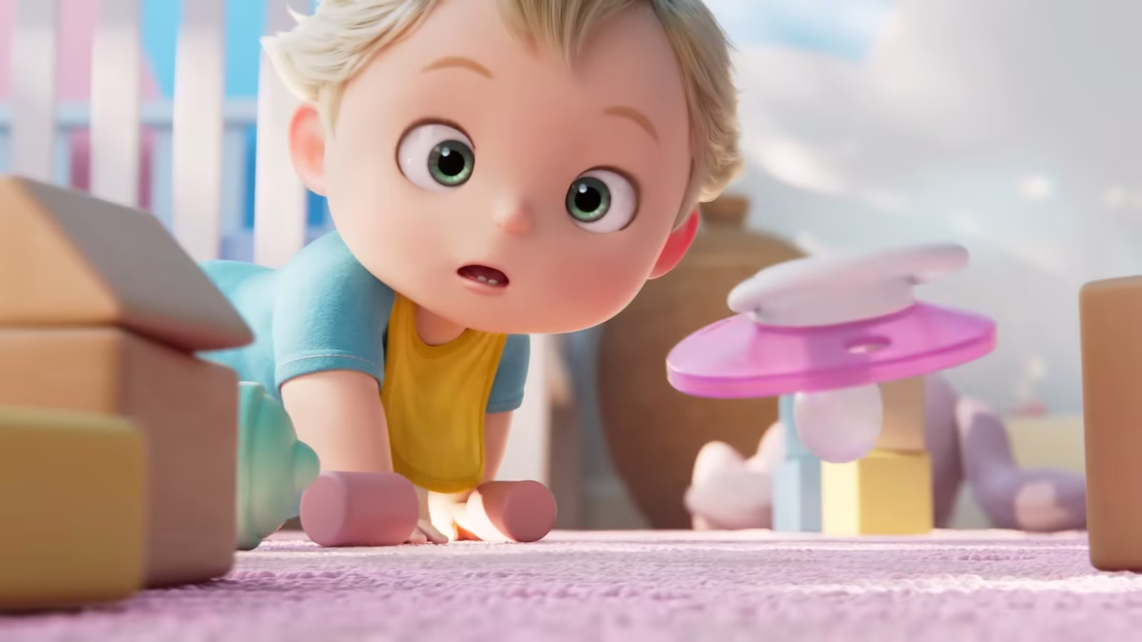 影片以高品質 3DCG 技術呈現,描述一名幼兒與母親玩耍的溫馨場景,嬰兒享受著奶嘴的撫慰效果。待媽咪暫時離開後,劇情隨即出現轉折,玩具、搖鈴和奶嘴開始自行移動,嬰兒跟著漂浮跳動的奶嘴邁出人生第一步,讓母親欣喜不已。