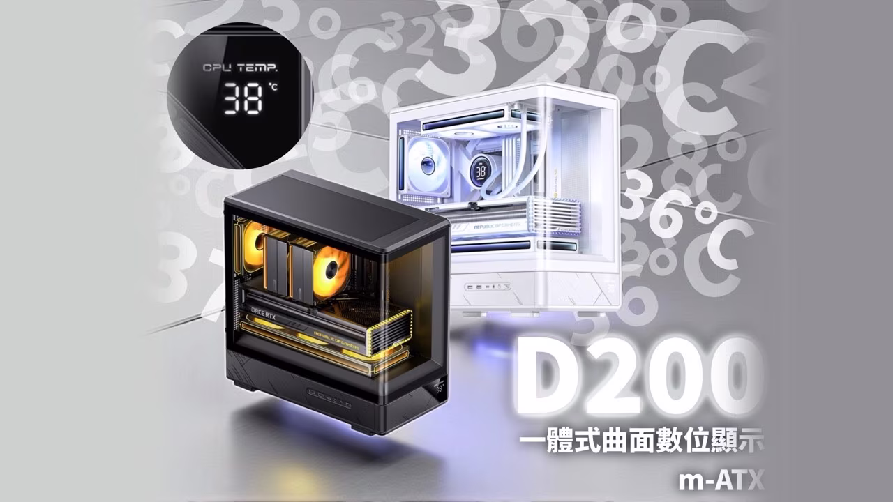 D200 前板數位顯示螢幕,可即時顯示 CPU 溫度,無需搭配水冷頭即可使用,這項設計讓玩家能隨時掌握系統狀態,是目前市場上唯一自帶數位顯示的 m-ATX 機殼,在實用與科技感之間取得完美平衡,非常適合想實時監控 CPU 溫度、又不想裝螢幕冷頭的玩家,是入門級機殼一大創舉。