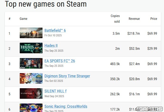 根據 Gamalytic 最新榜單,2025 年 10 月的 Steam 熱銷作品囊括霸佔媒體版面的多款新作,但熱門遊戲僅佔整體市場極小比例,大多數開發者難以分得一杯羹。