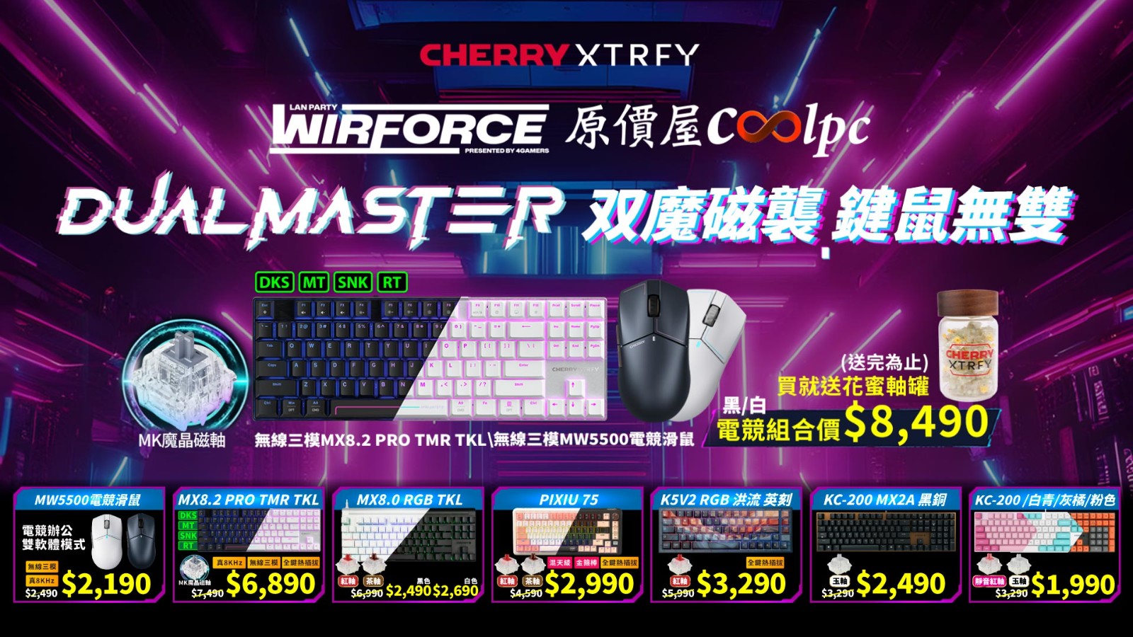 台灣年度最盛大的 LAN Party「WirForce 2025」即將引爆,德系周邊品牌 CHERRY XTRFY 攜手原價屋 Coolpc 推出限定「DUALMASTER 雙魔磁襲 鍵鼠無雙」活動,以旗艦級磁軸技術與破盤優惠掀起年末電競狂潮。
