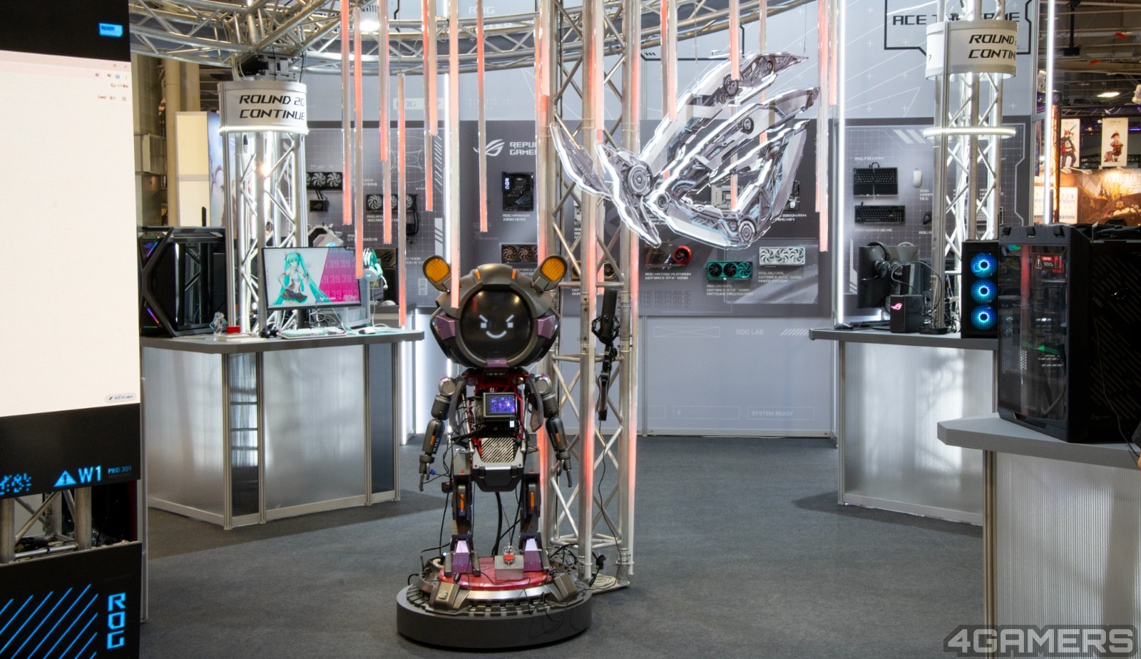 ROG 今年將過去出現在台北國際電玩展的 ROG Lab 搬到會場,打造明亮、簡潔的科幻空間,並讓原位於三創的 Omni 吉祥物主機前來助陣,透過內建 AI 語言模型,民眾可以透過麥克風向與它進行聊天互動。