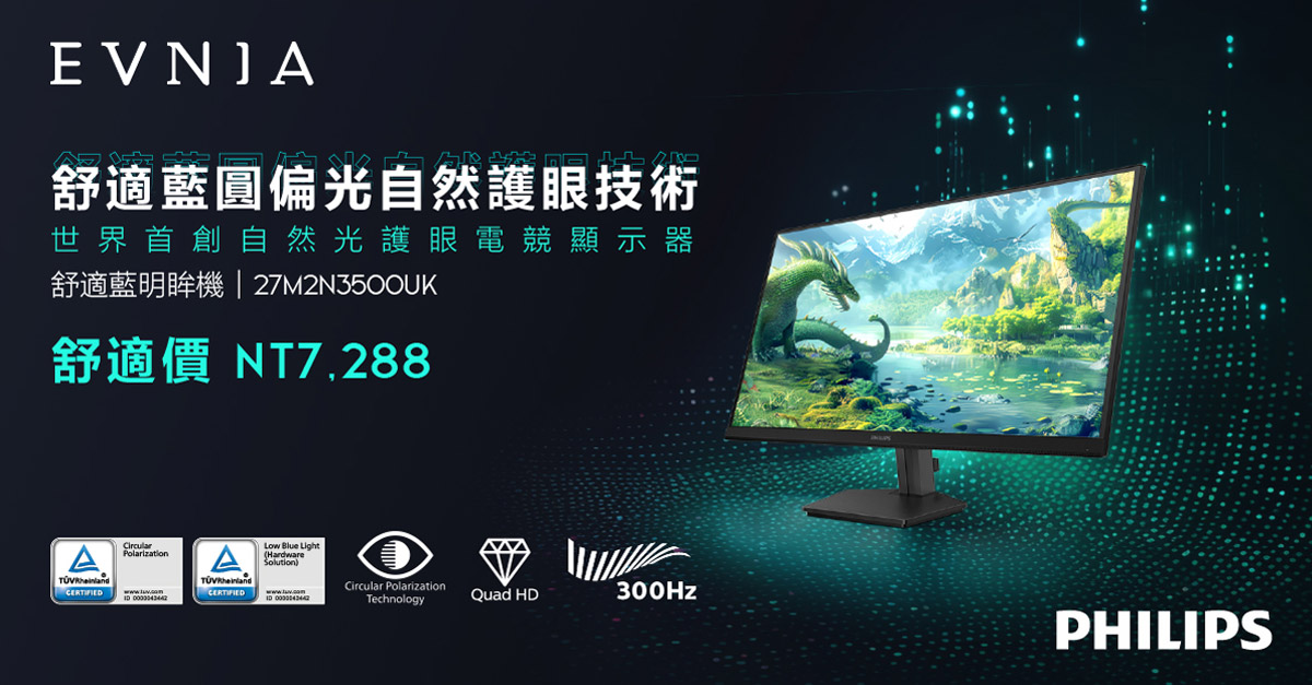 Philips Evnia 舒適藍明眸機 27M2N3500UK 已於 Philips 各大經銷通路與線上平台 PChome、MOMO、蝦皮旗艦館同步販售。