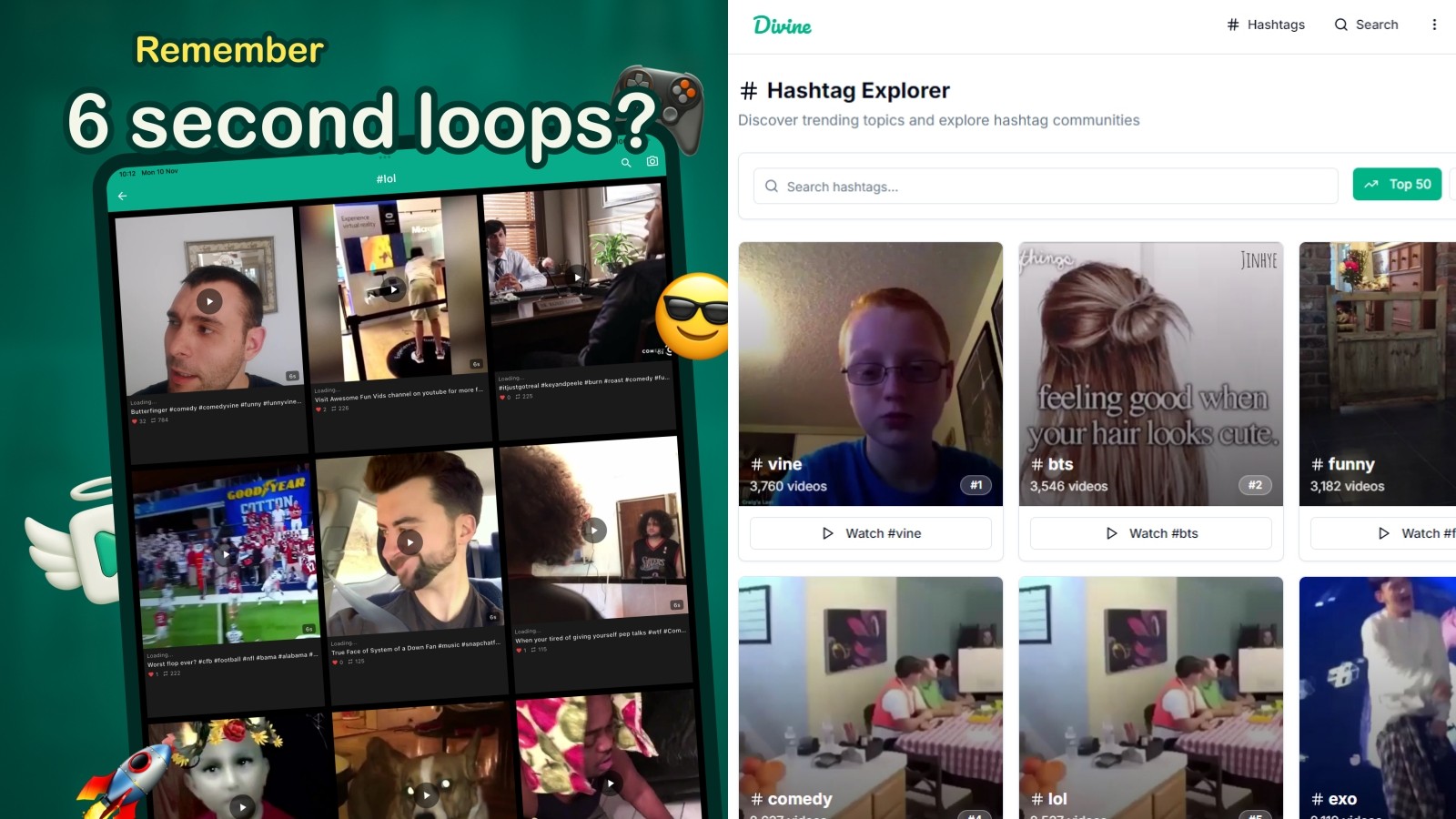 回歸轉生成「Divine」後最大的特色之一,是成功修復並重現 約 15~20 萬支、超過 6 萬名創作者的 Vine 舊影片資料庫。若原創作者完成身分驗證,還能找回過去的帳號與內容。