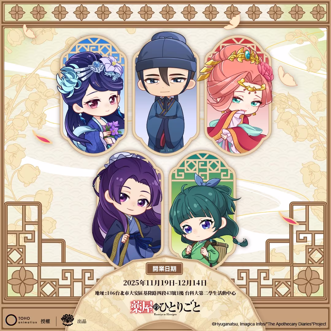 人氣動畫《藥師少女的獨語》正式與次元波板糖展開聯名主題企劃,以「後宮藥膳亭」為概念打造期間限定空間,讓粉絲走進花月之下的謎案與甘露饗宴,主題餐廳將於即日起至 12 月 14 日限時舉辦。