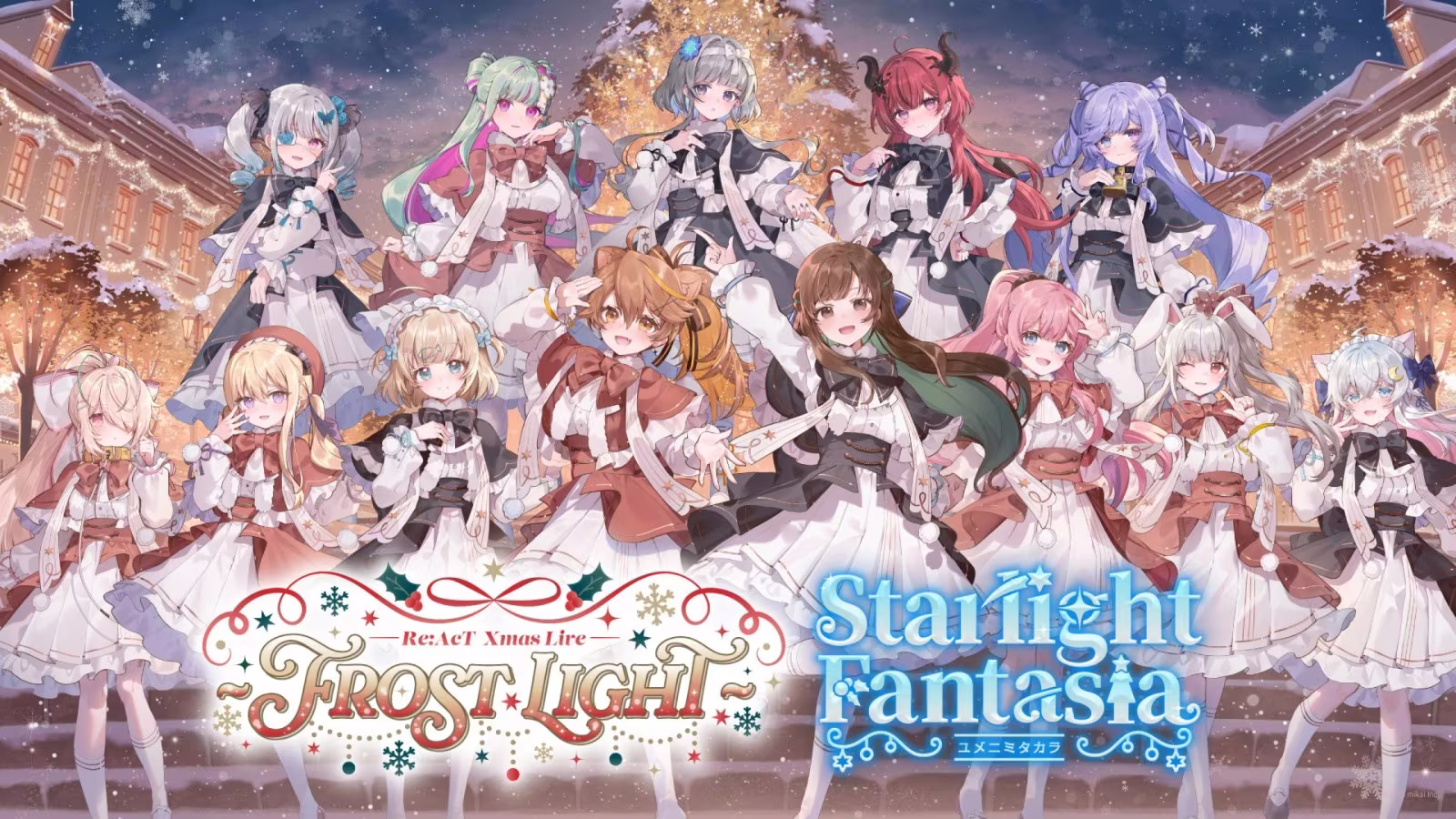 日場「Re:AcT Xmas Live 〜Frost Light〜」以「Merry Christmas」為主題,將獻上多首翻唱曲與聖誕氛圍滿載的華麗演出;夜場「ユメニミタカラ 〜Starlight Fantasia〜(夢幻寶盒~星光幻想曲~)」則聚焦 Re:AcT原創歌曲,並獻上虛擬主播成員間的洗牌(Shuffle)演唱,對粉絲們而言是難得一見的特別企劃。