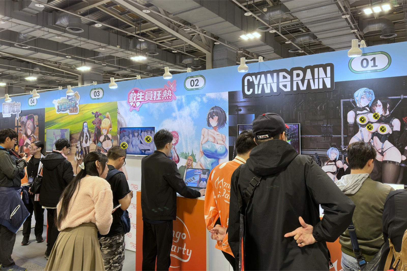 台灣成人遊戲發行商「芒果派對」(Mango Party)進駐 12 月 12~14 日的 G-EIGHT 遊戲展,本屆一口氣帶來 21 款遊戲試玩,成為成人展區內最多遊戲的攤位,更展出多尊旗下發行遊戲角色的2等身大胸像。