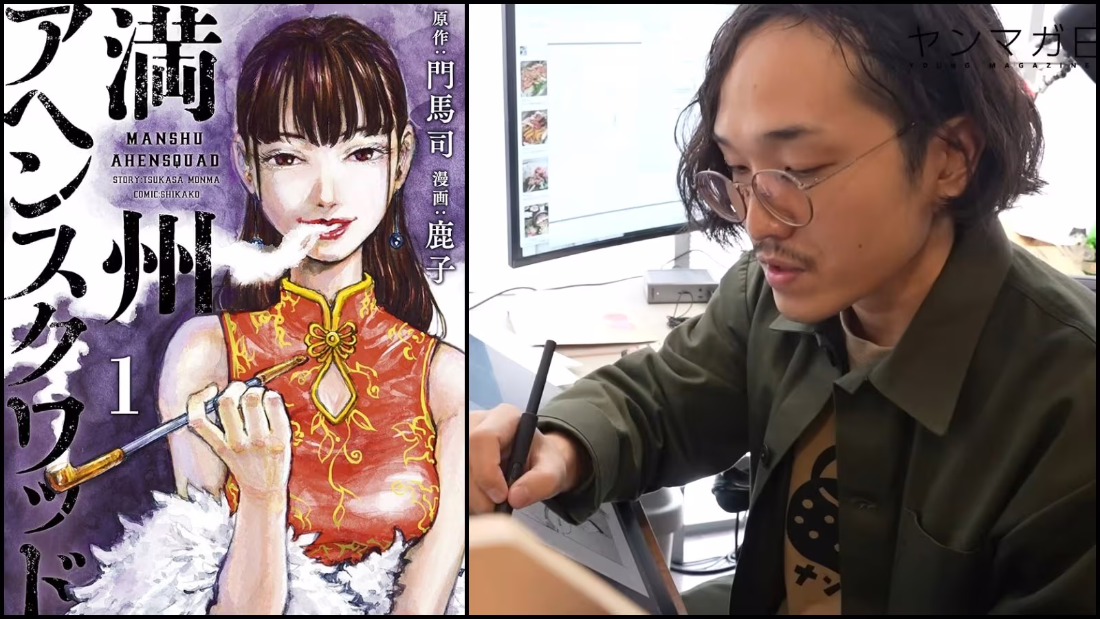 右圖截自YouTube「【満州アヘンスクワッド】作画・鹿子氏の美麗お仕事場に大潜入!」