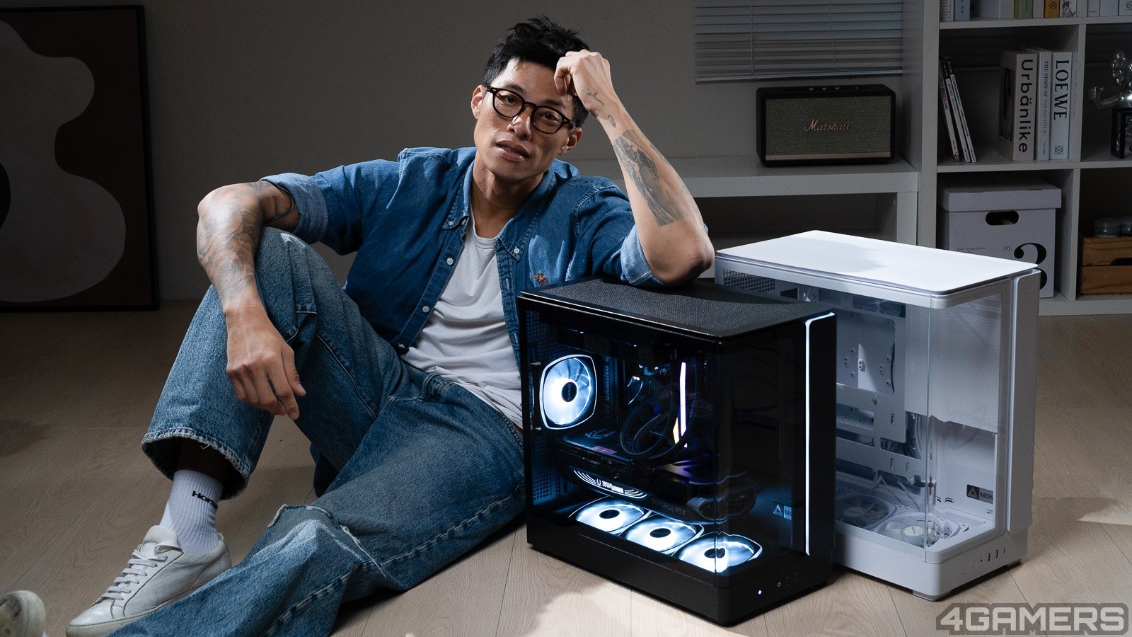 背面的配置前半段是電源供應器,後半部則是側開式硬碟支架,可在內側安裝兩顆 2.5 吋硬碟或兩顆 3.5 吋硬碟,玩家可以自由調配應用,硬碟支架還有另一個功用就是做遮蔽線材,背面也可以更美觀簡潔。