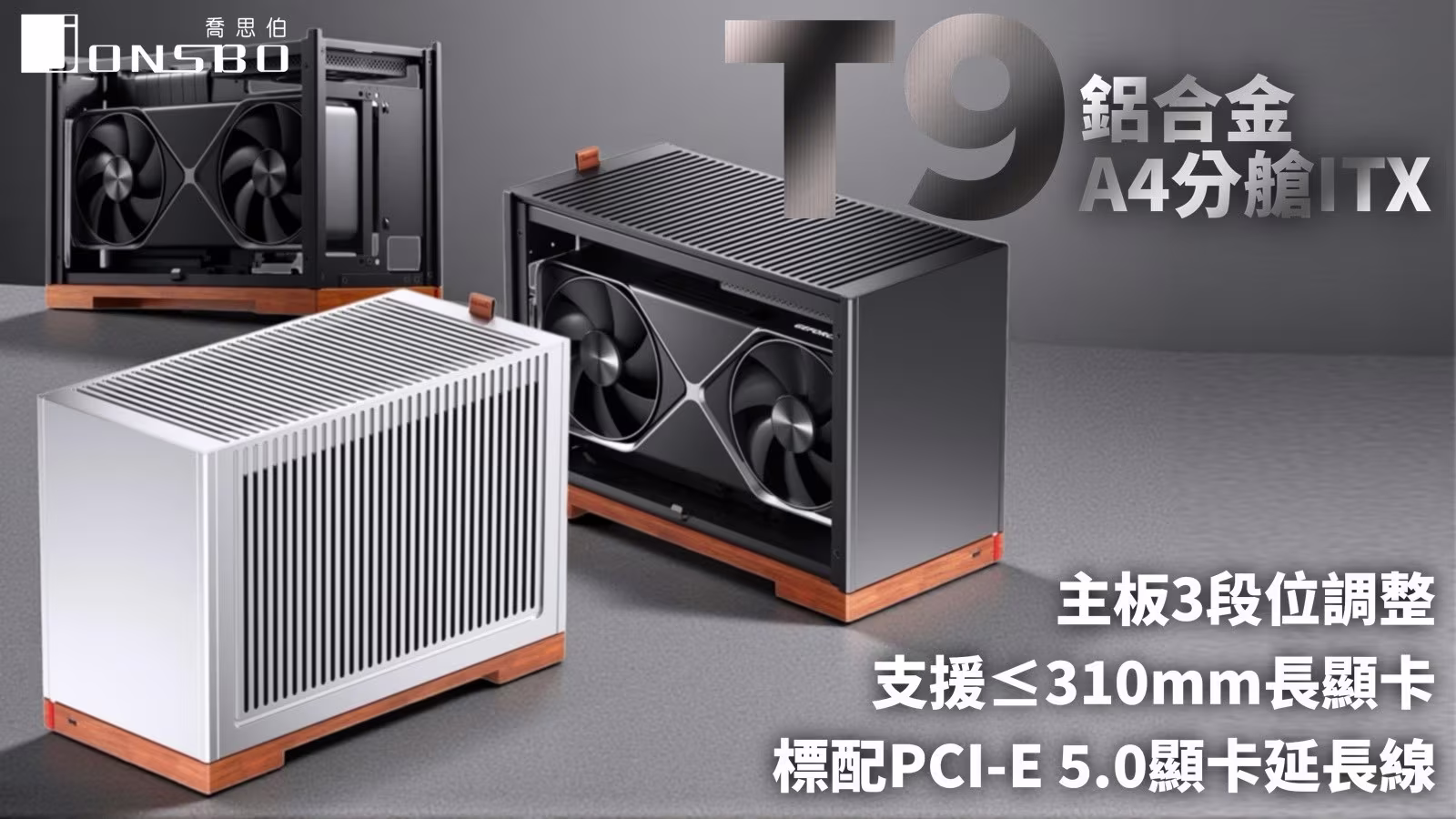 JONSBO T9 —— 是 A4 迷你型 ITX 超進化,也是鋁合金與實木交織的桌面精緻裝飾品,精密打造的分艙結構,帶給您不佔空間、卻極具質感與效能的裝機新選擇。