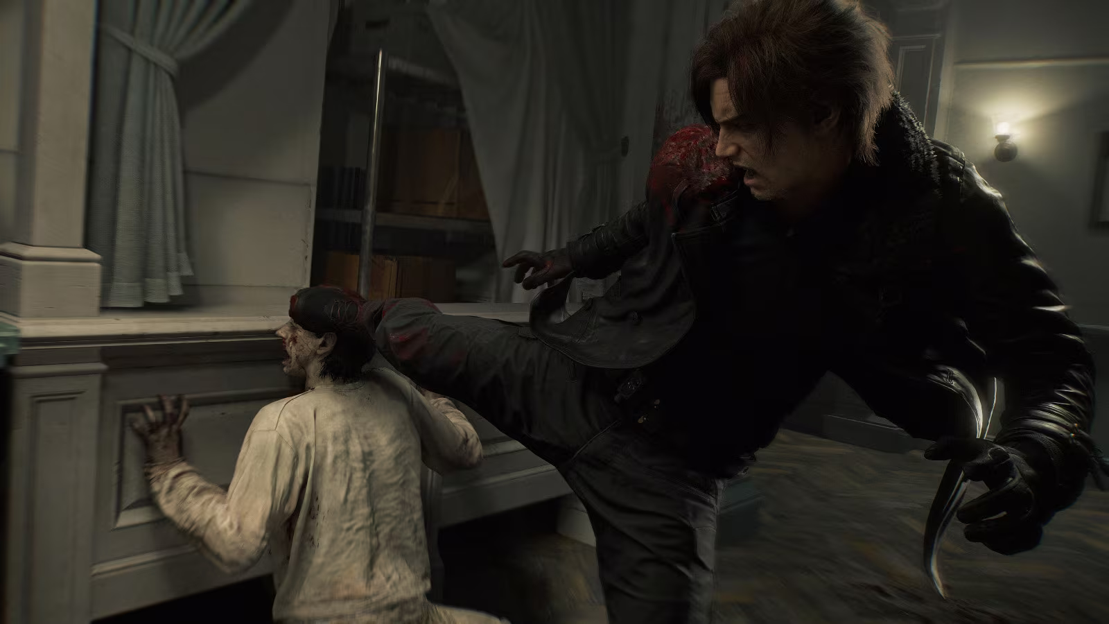里昂精通近身格鬥與槍械,同時有了全新的武器手斧,玩家可以掌握實機格檔後反擊,也可以打倒敵人後獲取他原本的武器來進攻擊,在影片中演示了打倒了一位拿電鋸的殭屍後,里昂可以拾起電鋸來攻擊下一位敵人,另外本次也有各種特寫鏡頭的終結技,令人血脈賁張。