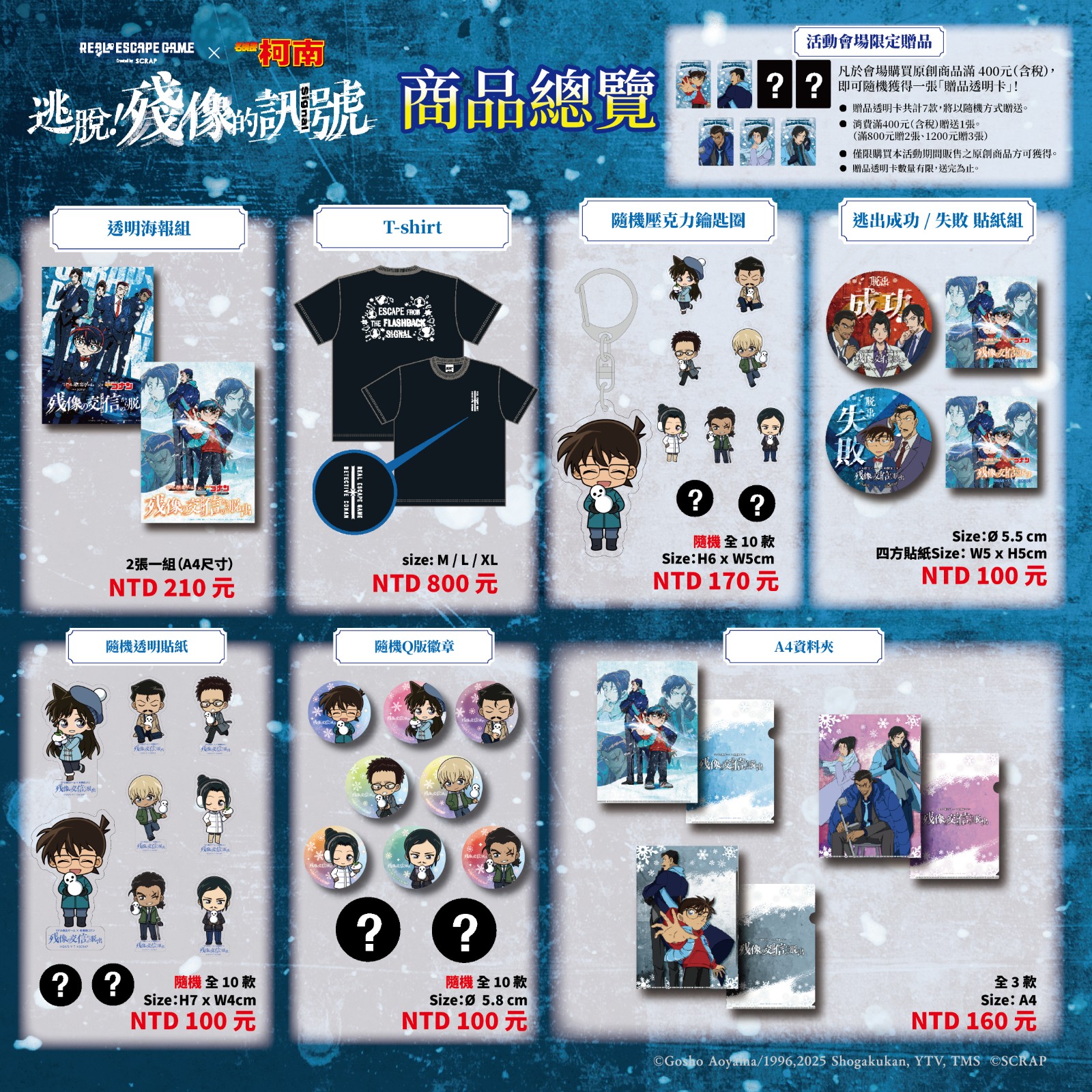 參與玩家現場消費滿 400 元,即可獲得會場限定「角色專屬透明小卡」,精緻設計引發收藏熱潮!現場同步販售多款《名偵探柯南:獨眼的殘像》獨家限量周邊,無論你是柯南、毛利小五郎或長野縣警隊的粉絲,都能將珍貴回憶帶回家。