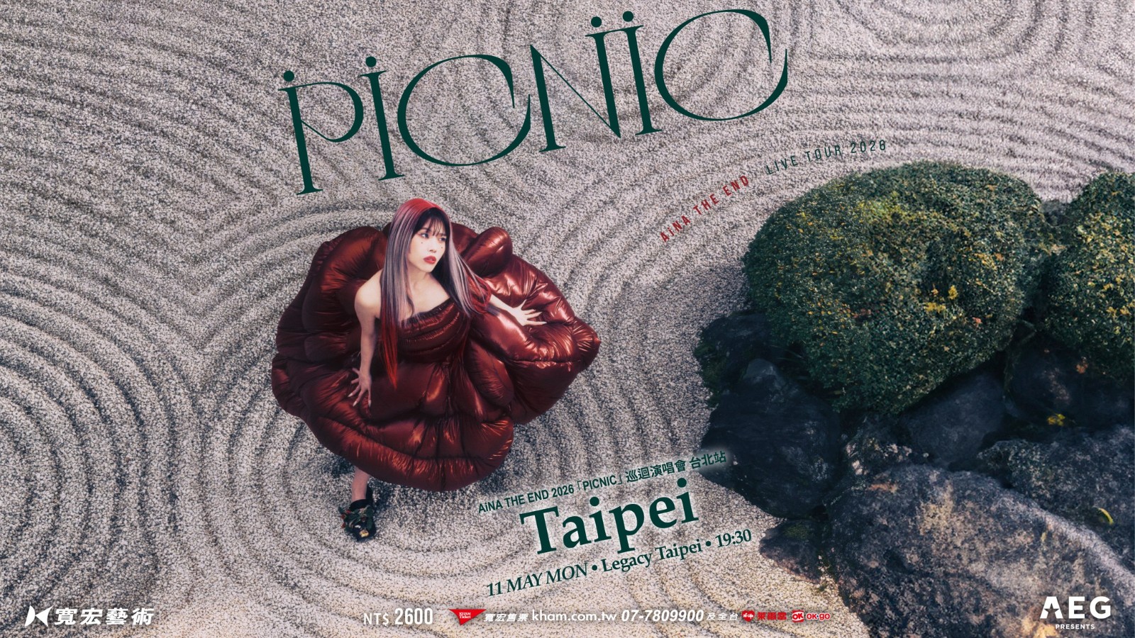 歌手 AiNA THE END 確定於 2026 年 5 月 11 日舉辦巡迴演唱會「AiNA THE END LIVE TOUR 2026–PICNIC–」台北站,地點為 Legacy Taipei。票券將於 1 月 28 日上午 10:00 寬宏售票開賣。