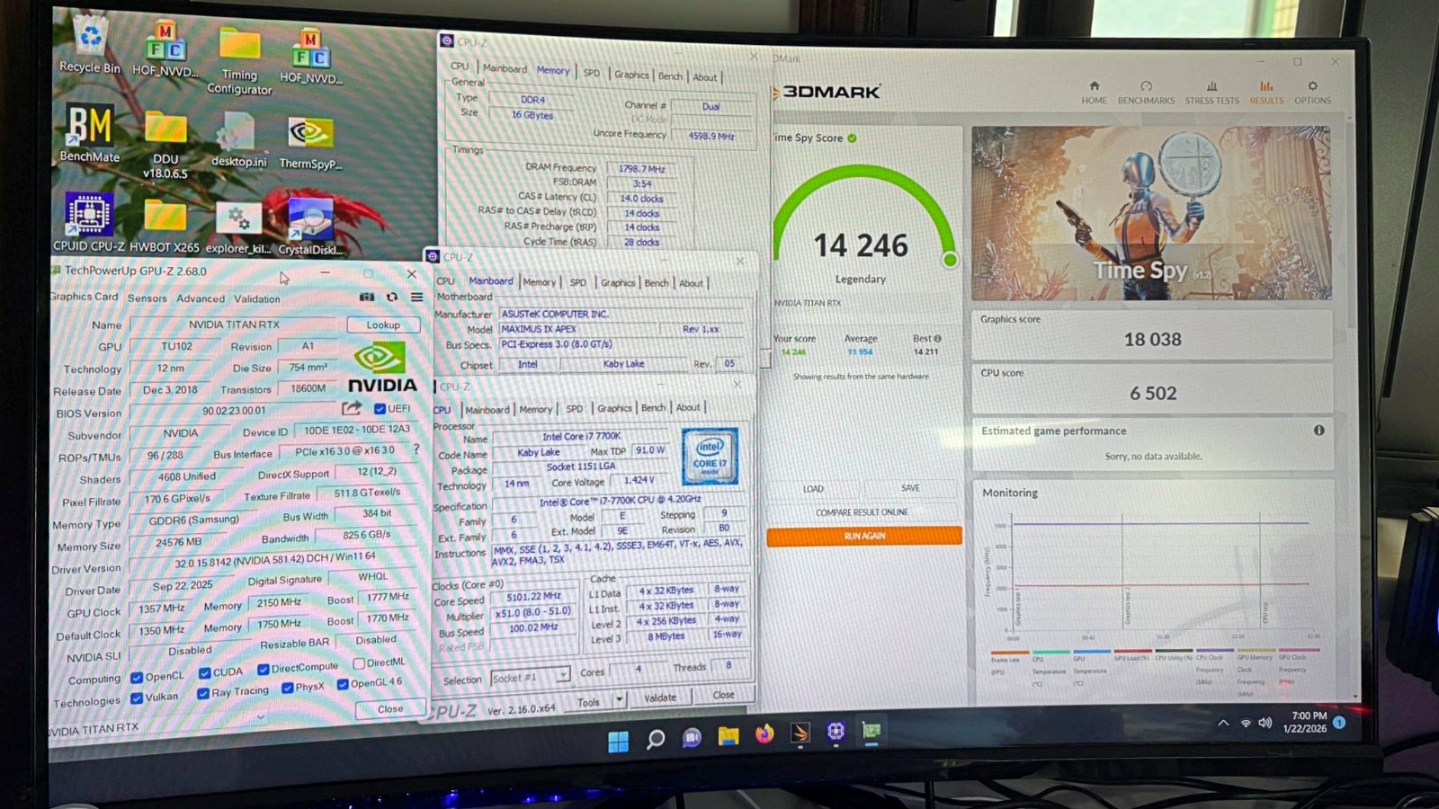 在完成一連串硬體移植後,「魔改 RTX 2080 Ti HoF」(或稱超級版 Titan RTX)於 3DMark 高階效能測試工具 TimeSpy Extreme 跑出 18,038 分的成績,超越多數高階顯卡的常態表現,作為對照,兩張 Titan RTX 串聯 SLI 平均分數約 17,000 分,而 RTX 3090 平均成績落在 14,000 分。