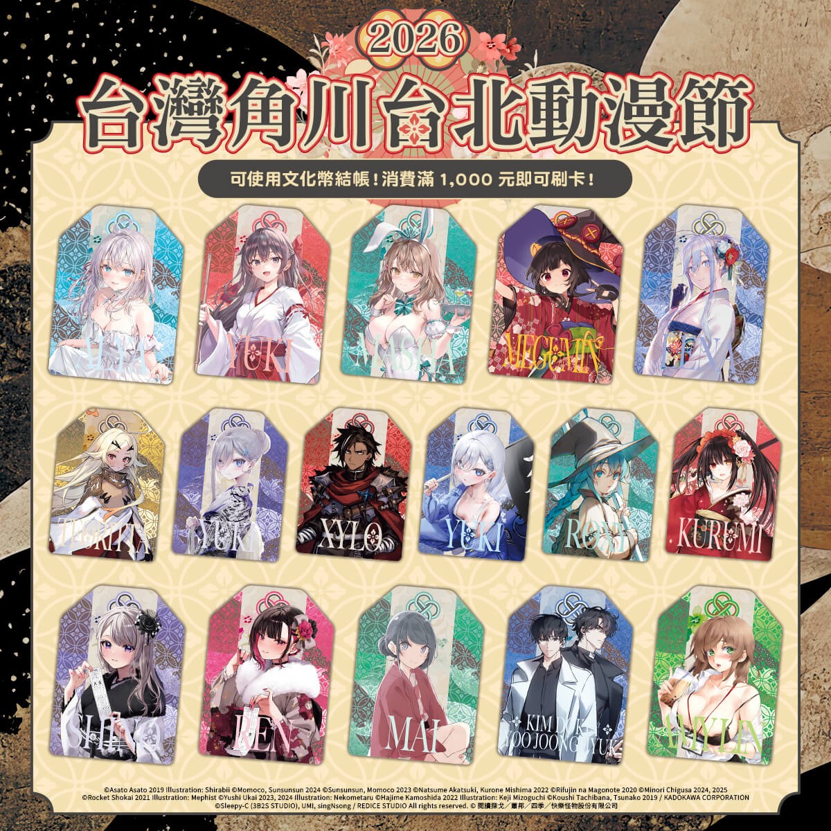 2026 台北國際動漫節將於 2026 年 2 月 5 日至 9 日南港展覽館一館盛大登場。台灣角川今年以「御守祝福」為主題,推出超強陣容的現場優惠與首賣精品。本次共有7部超強話題作首賣特裝版&限定版、近百款人氣作首賣精品,以及 20 款會場首賣加購&預購商品。更祭出會場限定優惠全館 79 折、3 重滿額贈、展場限定福袋等。