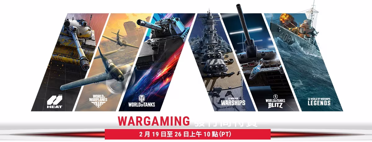 戰遊網自 2 月 19 日起舉辦 Steam 平台「Wargaming 發行商特賣」,旗下「World of」(~世界)系列 4 款基本免費遊戲同步釋出限時免費 DLC,包含遊戲內資源、永久迷彩、加值帳號與多項消耗品等內容,另外還能透過觀看指定直播取得專屬 Steam 個人檔案物品。