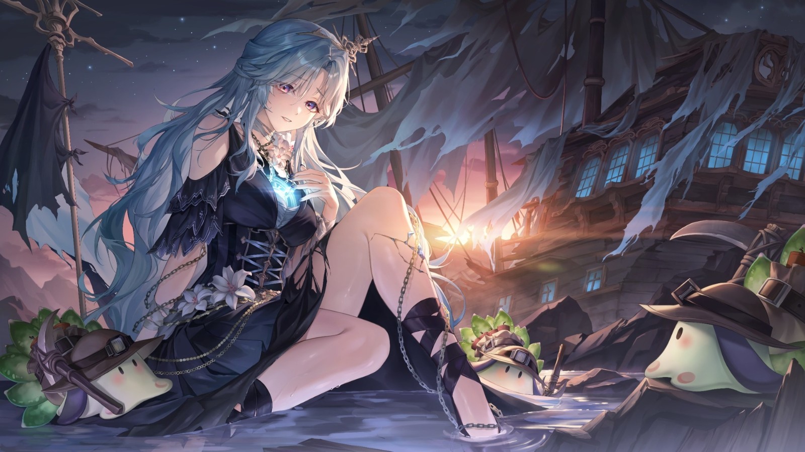 幽夜南栖胸口發光的船舵、百合花配飾與神秘的葉羊寵物「南瓜VII」則隱喻希望,將人與人之間的羈絆作為燃料,重啟航道,踏上找尋自我的旅程。