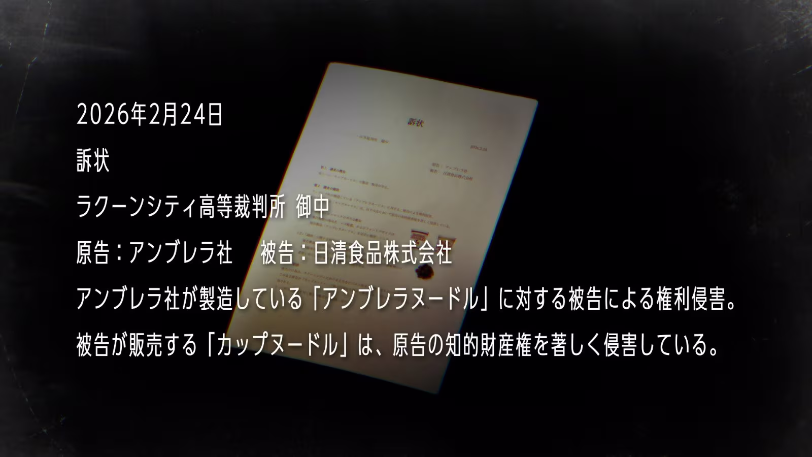這則推文是一則起訴狀,表示保護傘公司將對日清食品提告,提告地點為拉昆市高等法院,理由是日清食品侵犯了保護傘公司杯麵的智慧財產權。