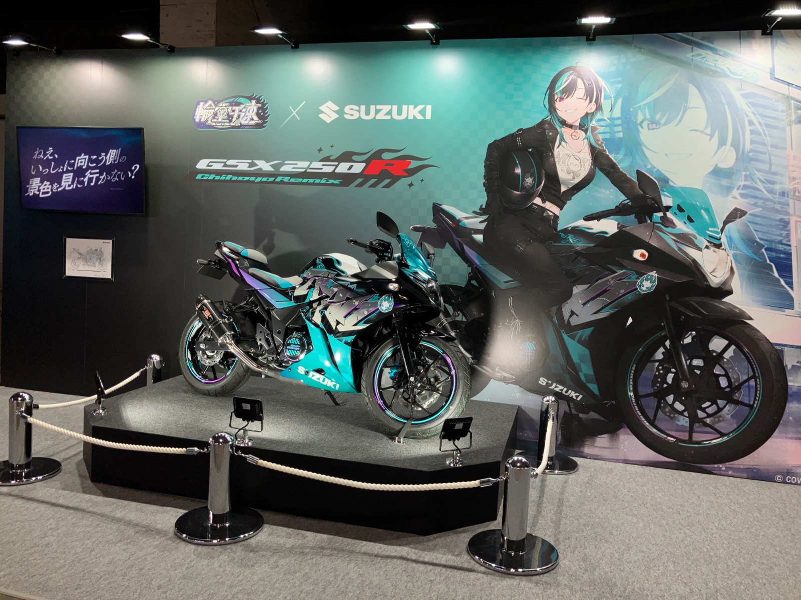 聯名機車 GSX250R[Chihaya Remix]除了在 hololive SUPER EXPO 2026 攤位展示外,也預計在日本各地的機車展活動亮相,下一場從 3 月 20 日於大阪舉行的摩托車展開始,之後還會陸續在東京與名古屋的展會中展出。