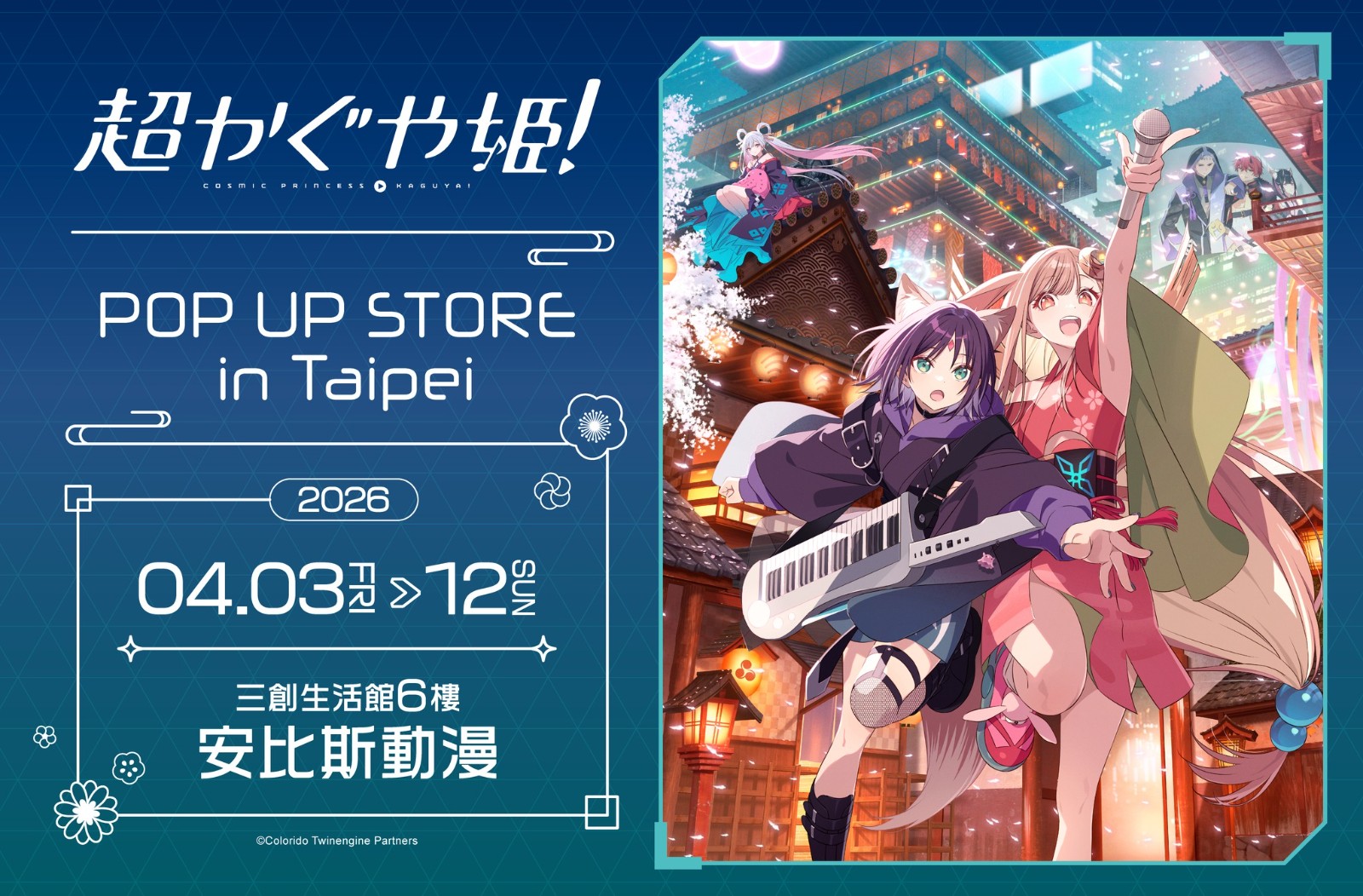 Netflix 動畫《超時空輝耀姬!》日本電影院應援場日前才剛擴大至全日本範圍院線舉辦,近日更宣布將於台北舉辦期間限定快閃店活動,「超かぐや姫 POP-UP STORE」預定 2026 年 4 月 3 日登陸台北三創生活園區。