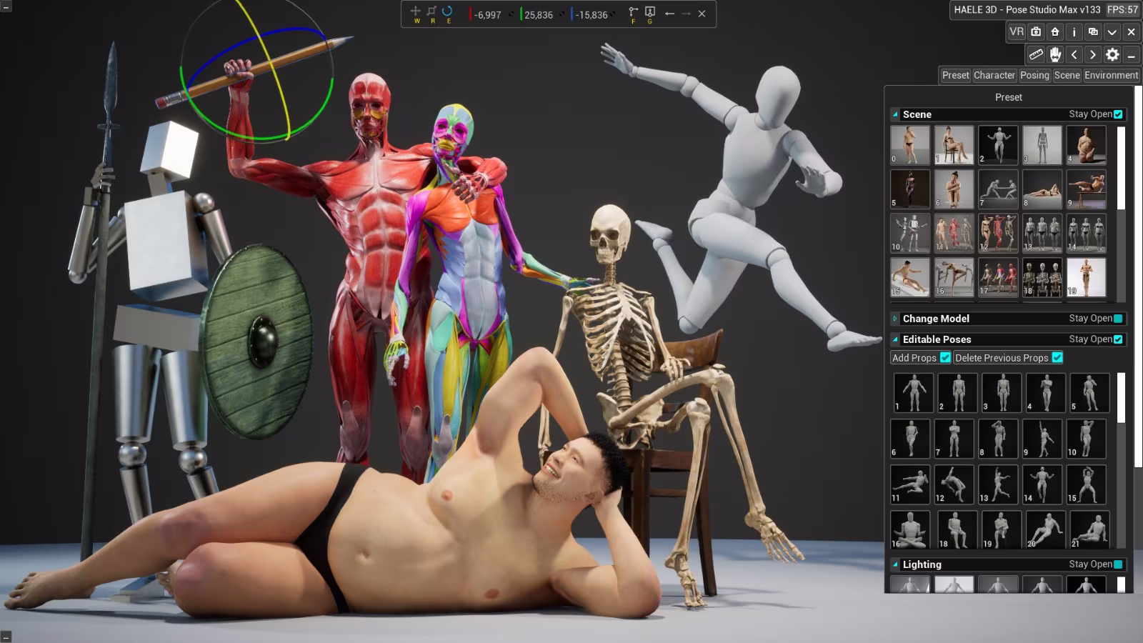《HAELE 3D》提供可自由調整的人體 3D 模型與場景,主打協助創作者在繪製人物、雕塑練習時,作為姿勢設計的結構參考,從初學者到專業人士都能使用。