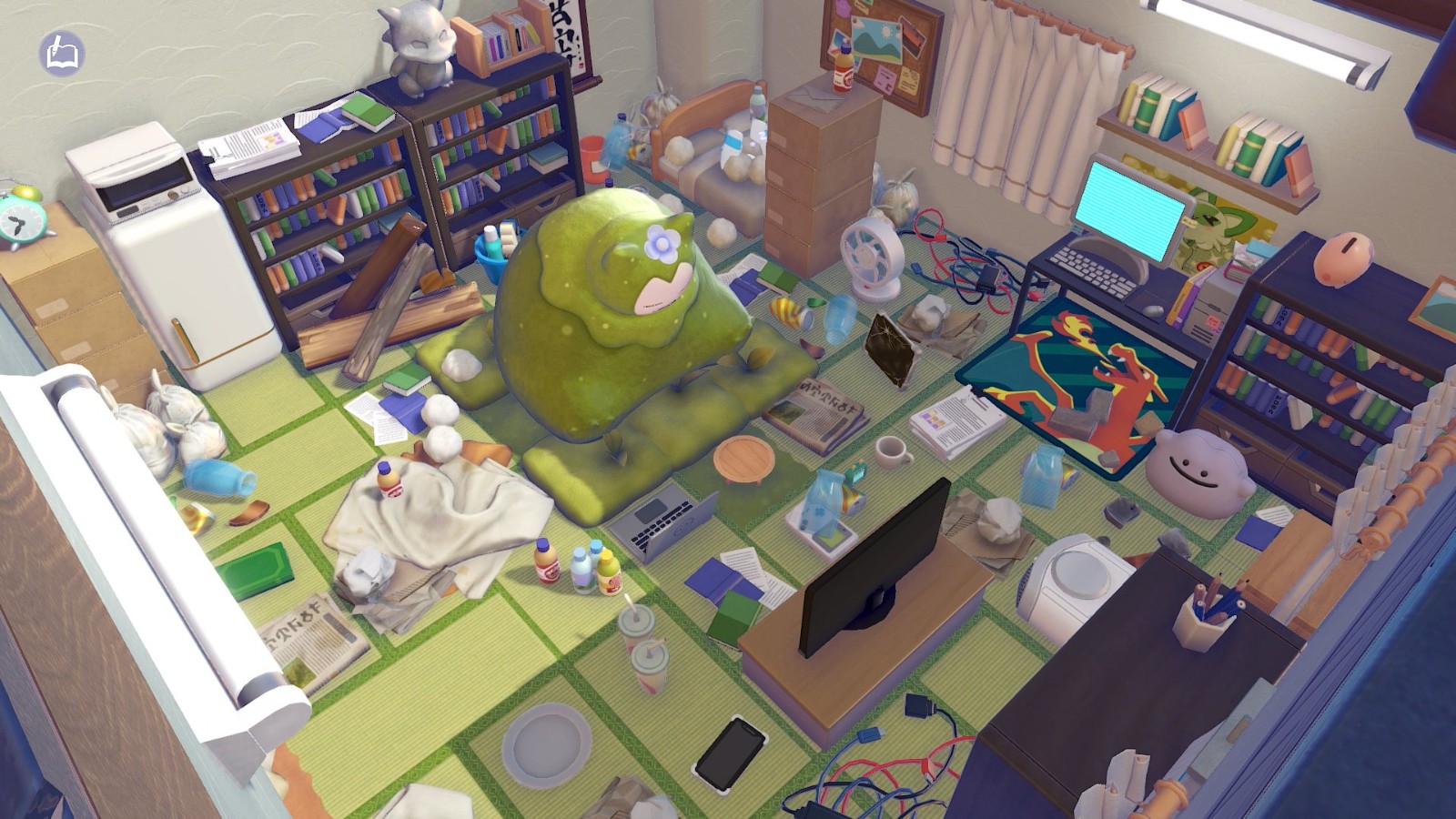 不過見到「苔卡比獸」因為久睡而長出苔蘚的造型,日本 YouTuber「あめしこう」巧手利用遊戲中的道具來打造出無光又亂糟糟的房間,讓卡比獸看起來就像是困在遊戲中廢寢忘食的宅宅(這我)。