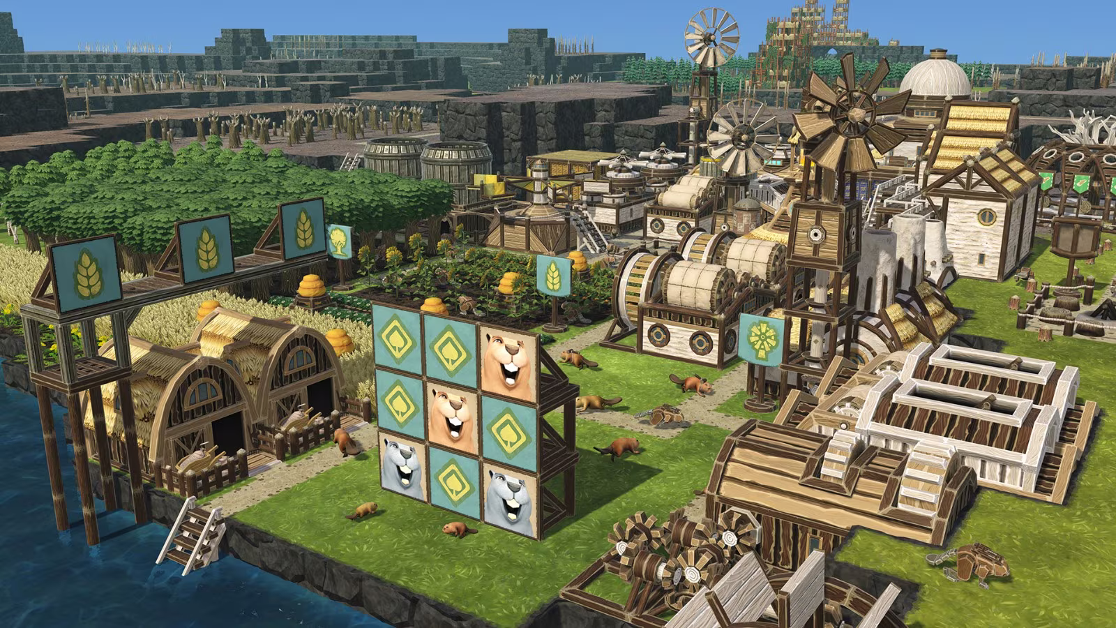 必須像真的河狸一樣建造水壩、蓄水池與抽水設備,在水量充足時儲備資源,並在危機來臨時維持聚落運作。本作經過七次大型更新與系統擴充,完整版帶來自動化系統、全新地圖與建築等大量新內容,開發團隊定位為一場「Mega Update」。