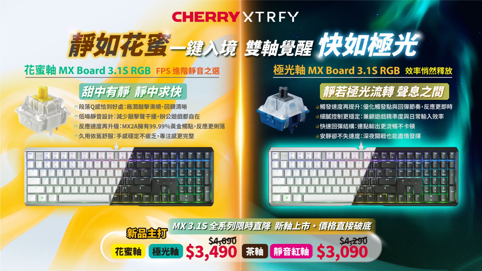 CHERRY MX 3.1S 全系列限時直降,新軸上市・價格直接破底。