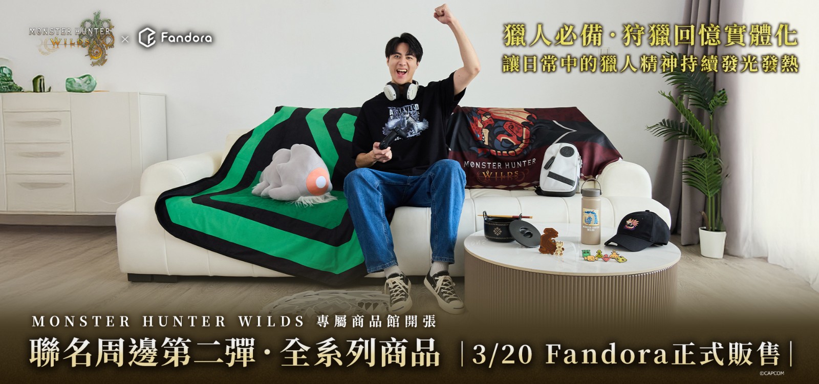 打造角色收藏周邊的台灣品牌 Fandora 宣布與《魔物獵人 荒野》(Monster Hunter Wilds)聯名推出周邊第二彈,全系列商品現於 Fandora 正式開賣。官方表示 Fandora 將遊戲中極具代表性的魔物圖騰、回復道具以及獵人日常生活必備的裝備全面「實體化」,讓獵人們在日常中的獵人精神持續發光發熱。