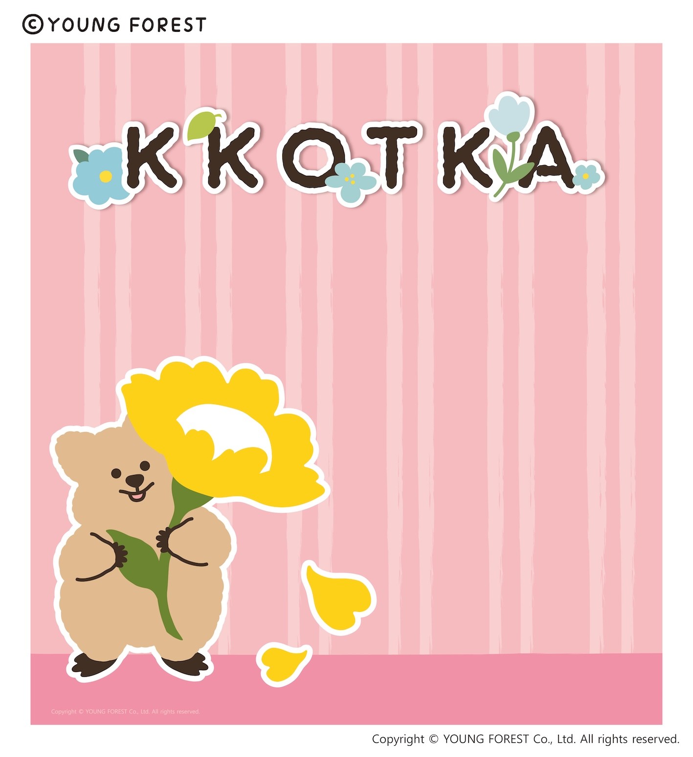 從花朵裡蹦出來的短尾矮袋鼠勾卡KKOTKA名字結合「花(꽃)」+「Quokka(袋鼠)」,象徵要像花一樣溫柔地療癒粉絲的生活,所以這次帶來滿滿的花!