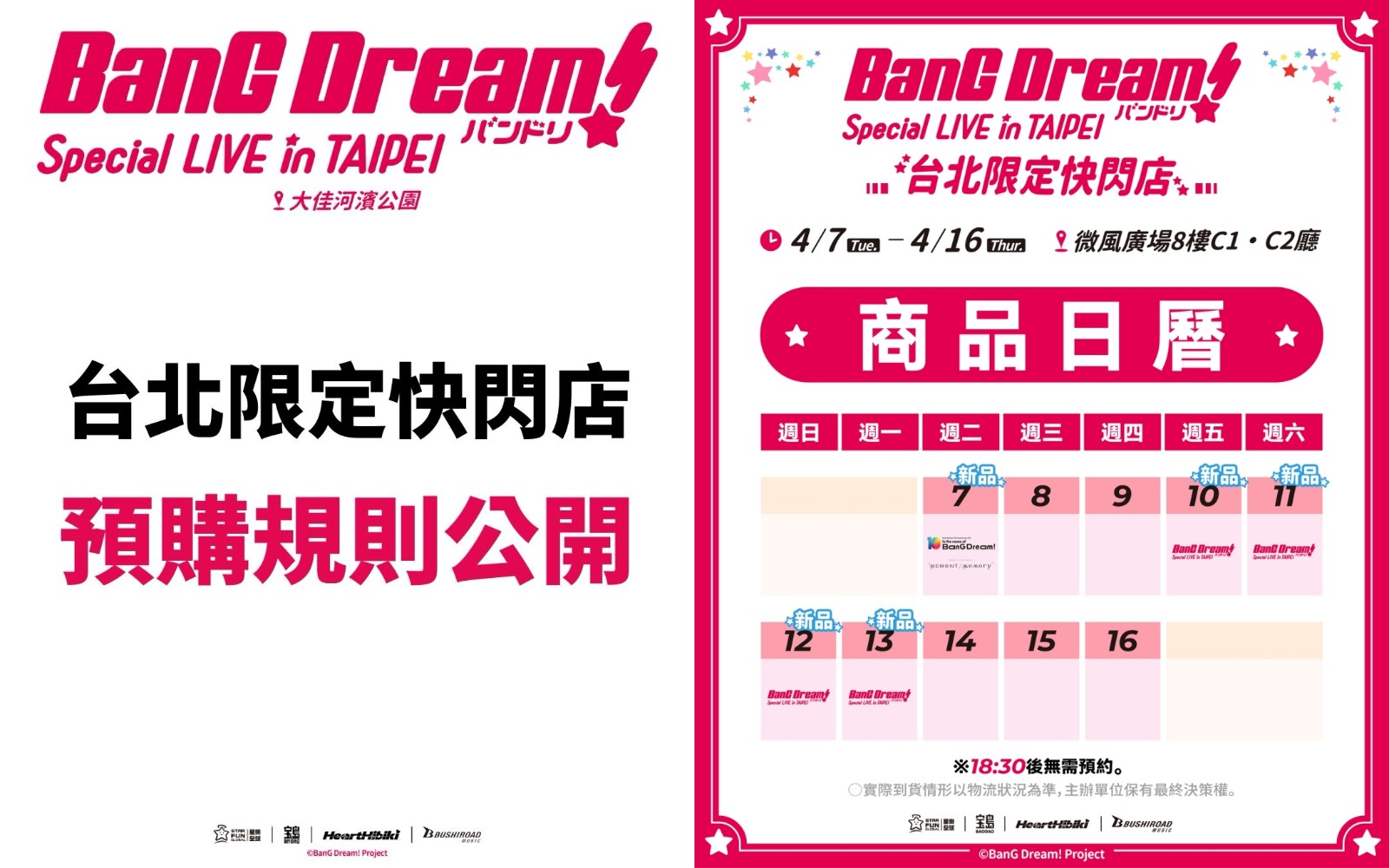 - BanG Dream! Special LIVE in TAIPEI 台北限定快閃店預約連結請點我
