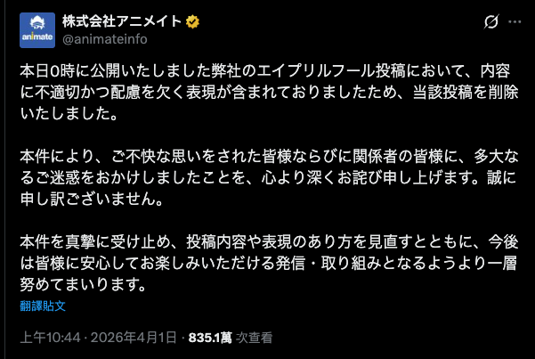 然而這段介紹同時引發了乙女遊戲玩家以及 BL 愛好者批評,不到 12 小時就由安利美特自行刪除 SNS 以及官網內容,並發布致歉公告: