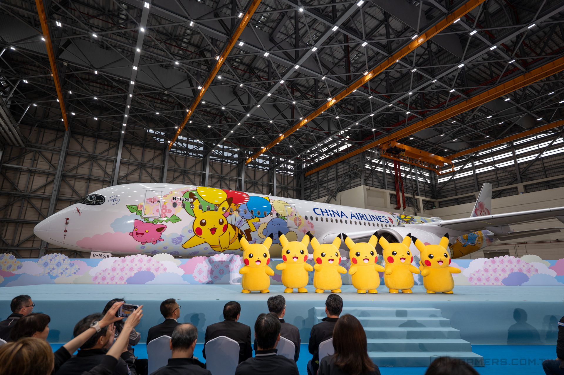 China Airlines 中華航空與 The Pokémon Company 寶可夢公司共同打造新一代寶可夢彩繪機「皮卡丘彩繪機 CI2」,今(1)日正式亮相,皮卡丘、快龍在內共 13 隻寶可夢融合祥雲花磚圖騰,將承載著訓練家一起飛翔。