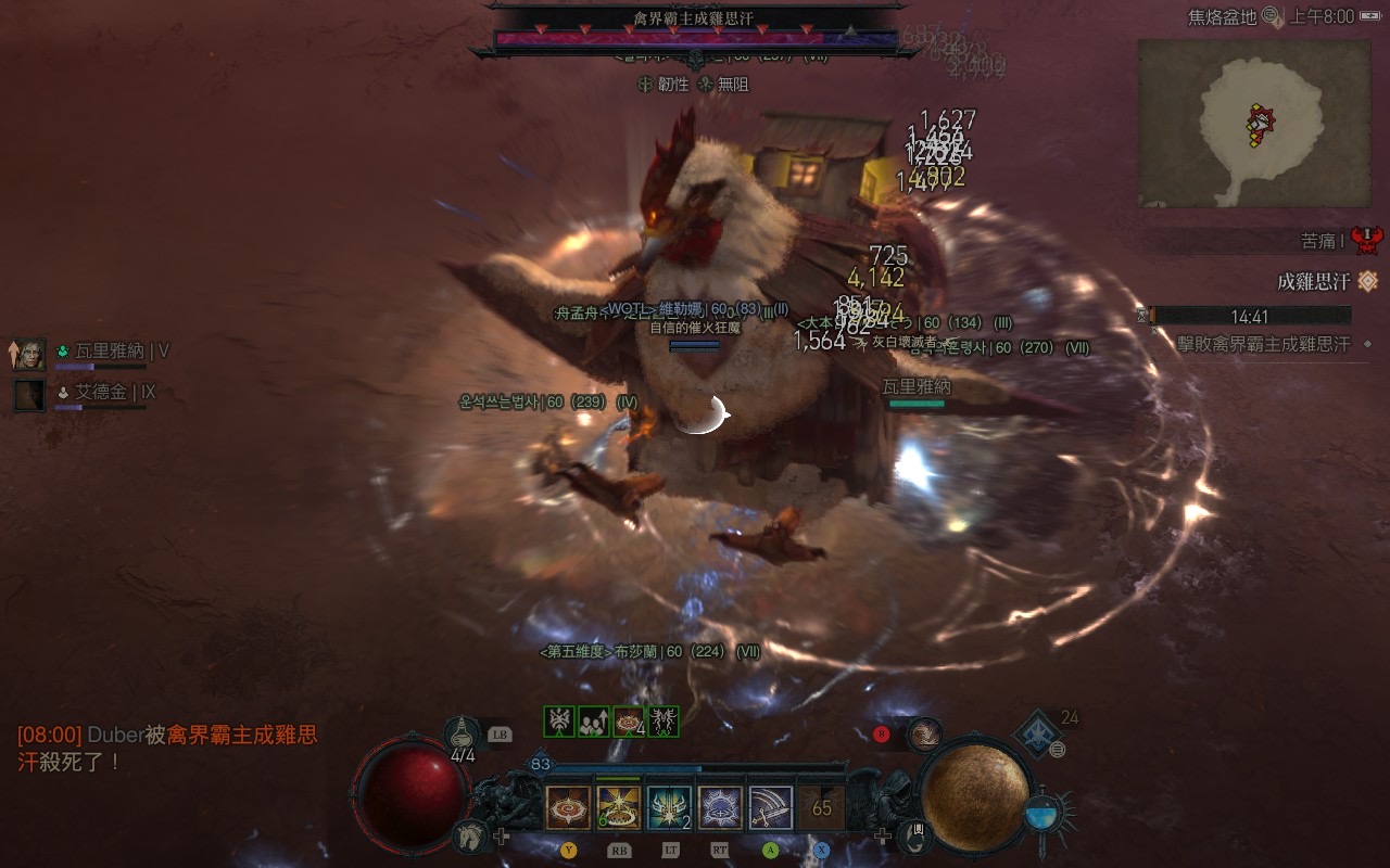 這個兇殘的首領有著非常響亮的名稱「禽界霸主成雞思汗」,掉落物並非是一般遠古傳奇,而是相關的諧音獨特裝備。玩家 skyweng 在社群分享會掉落法杖「咯咯魔典」可在玩家撿起石頭時「雞發潛能」;弓箭「奪禽目」使用時會有雞叫聲;長柄武器「致命一雞」對敵人機率召喚爆炸雞。