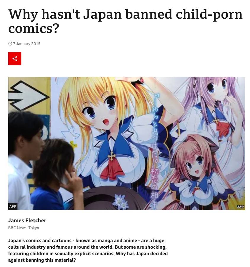 而這次的 Dylan Dawes 遭逮捕的消息公開後也引起日本網路社群譴責,回憶 BBC 曾在 2015 年公開過專題報導《為什麼日本還沒禁止以兒童色情為題的漫畫?》,讓日系 ACG 作品遭到長久的污名化。如今 BBC 被爆出相關人士持有真實兒童不雅影像,讓這篇多年前的報導顯得格外諷刺。