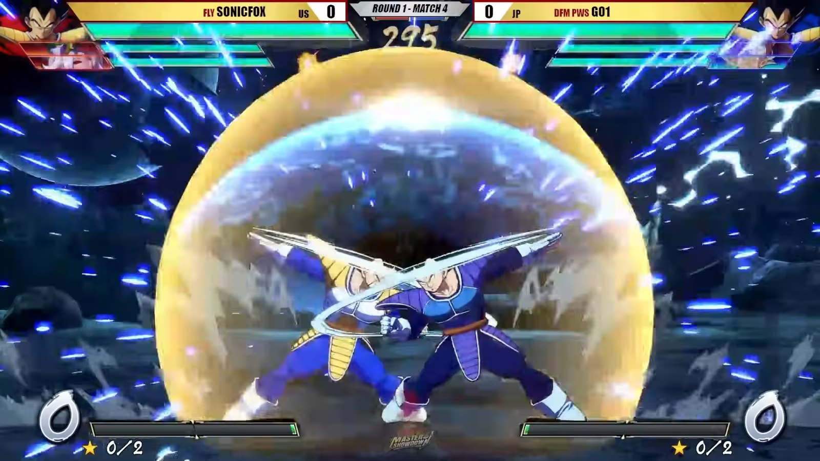 比賽一開始,雙方都選用貝吉塔(達爾),在開場約 15 秒內,兩人幾乎每一拍都使出完全相同的動作與攻擊節奏,招式互撞、彼此抵消,形成零傷害連續對衝的攻防戰。