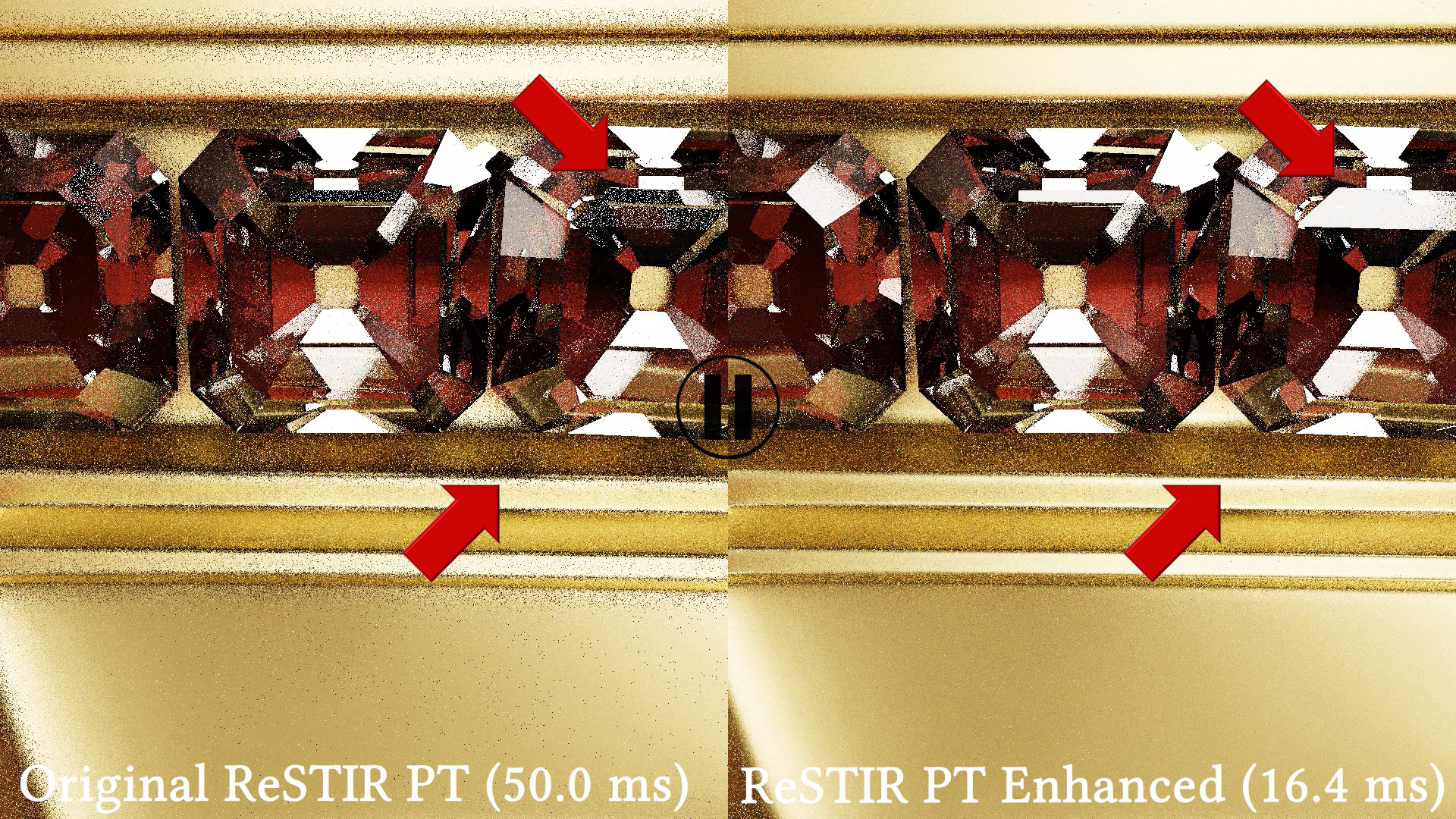 改進後的演算法讓 ReSTIR 光線路徑追蹤花費更少時間做重複工作,也減少錯誤的重複使用決策,在場景移動或可見性變化時表現更好,包括減少閃爍、噪點,也使路徑追蹤在移動時的表現更穩定。