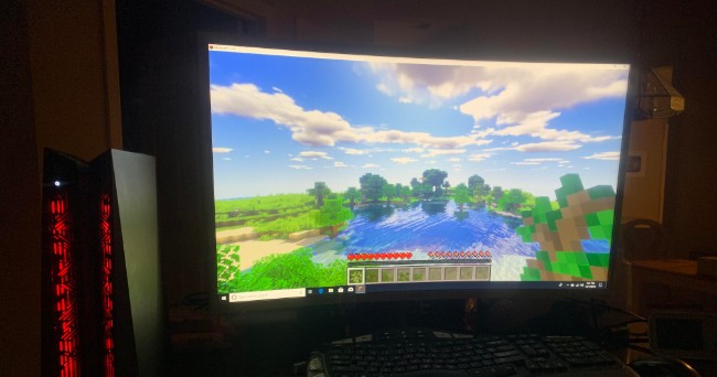 一位老爸買電競桌機配曲面螢幕給7歲創世神玩《Minecraft》,給他開最高畫質 🖥