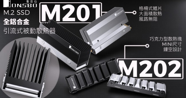 解熱專家喬思伯Jonsbo M201&M202最新世代全鋁SSD散熱器