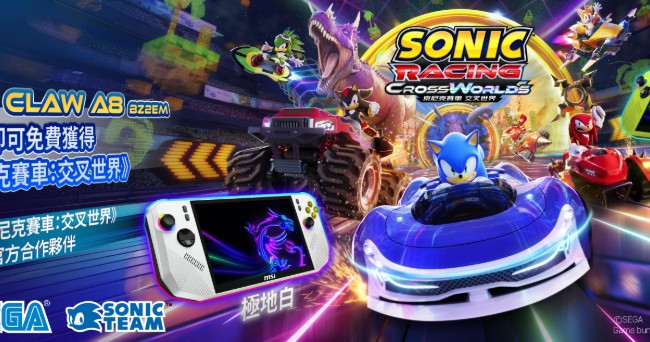 MSI聯手SEGA,買MSI Claw A8電競掌機送《索尼克賽車:交叉世界》