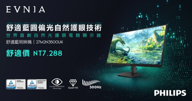 Philips Evnia發表全球首款搭載圓偏光自然護眼技術的舒適藍明眸電競顯示器27M2N3500UK,開啟「自然護眼」新時代
